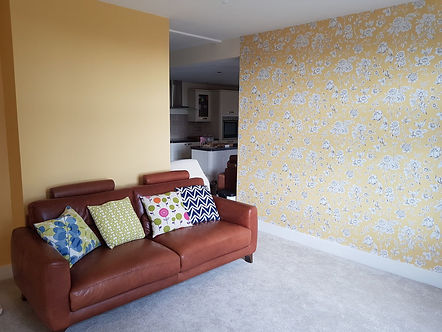 Added a lovely splash of colour to a Sidmouth B&B matching wall colour to a complimentary wallpaper bringing real character to the sitting room.